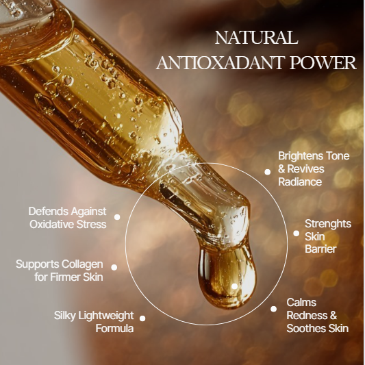 An antioxidant skin serum with broad-spectrum defense and renewal that restores vitality, leaving skin radiant, resilient, and renewed.